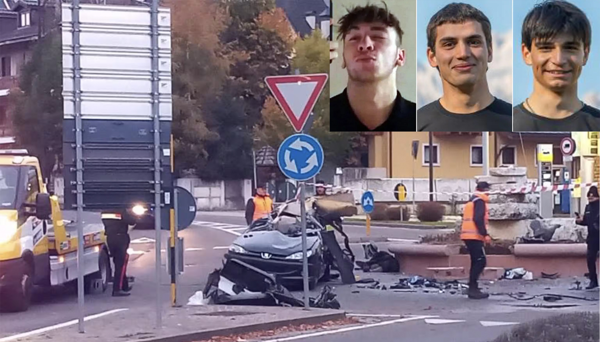 Una notte di dolore e incredulità quella del 19 ottobre, che ha scosso la comunità di Asiago: tre giovani di poco più di vent’anni hanno perso la vita in un terribile incidente stradale. Era da poco passata la mezzanotte quando l’auto su cui viaggiavano, una piccola utilitaria, si è schiantata contro la fontana al centro della rotatoria di via Trento, alle porte del centro storico. L’impatto è stato devastante: i tre ragazzi seduti nei posti anteriori e posteriori sono morti sul colpo, mentre un quarto occupante è stato estratto vivo dalle lamiere e trasportato d’urgenza in elicottero all’ospedale di Vicenza in codice rosso. Quasi illeso, ma sotto shock, un quinto amico che seguiva la scena da un’altra vettura.